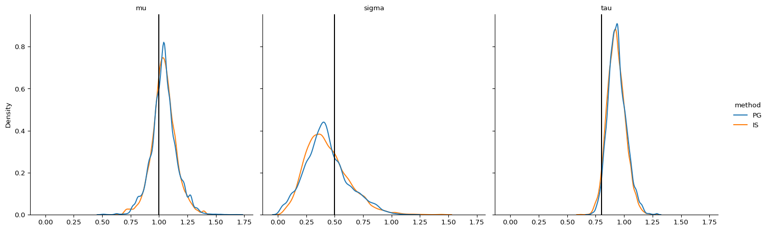 plot_df["method"] = np.repeat(["PG", "IS"], len(plot_pg["variable"]))