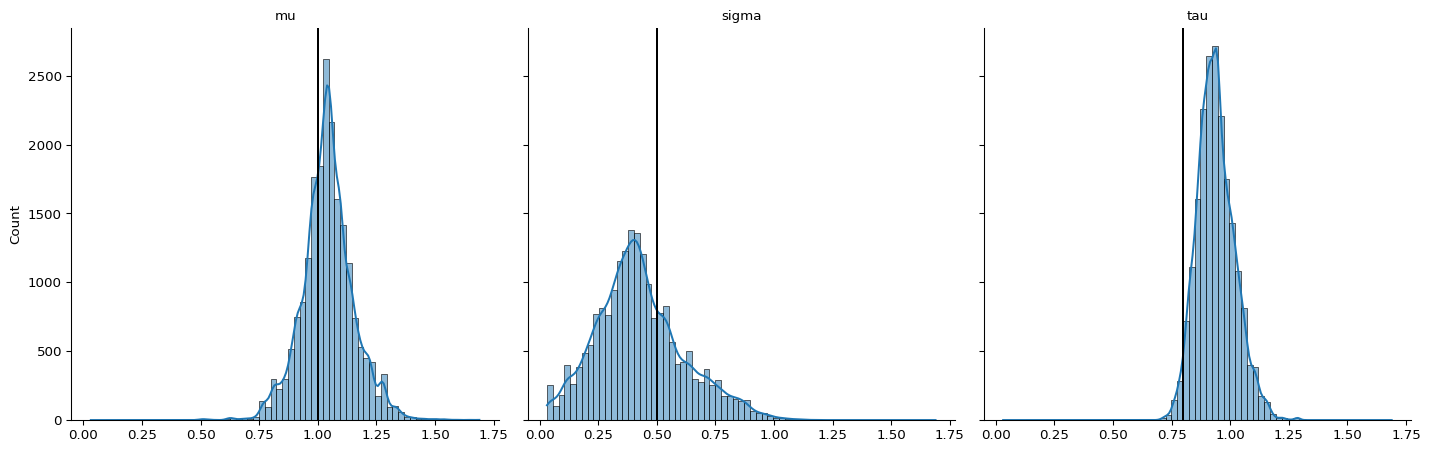 for ax, theta in zip(hp.axes.flat, jnp.array([mu, sigma, tau])):